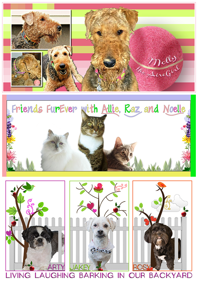For about ten years, more or less, I've been creating PhotoArt for our blog and for many other bloggers. By and large many designs are for the pet blogging community although from time to time I've been asked, and challenged to do design work for other clients, non pet related. In more recent years, my designs have expanded into the newer realm of other social media sites. My program of choice is Adobe Photoshop CC (I learned on Photoshop 5.0), although I often complement this with other art friendly programs. Much that I do is on a complementary basis, for example: Rainbow Bridge images and The Cat Blogosphere among others. For other work, a small fee is charged. When not working on images for publishing, I've enjoying altering and enhancing (or playing around with!) family photos for many years ... particularly the photos of my three grandchildren as they have grown from infants and toddlers to their teen years. From these photos, I've created memory albums (printed) for many family members. Although it is common now to view ones photos on a cell phone, or a computer slide show, I guess I am just old-fashioned enough to enjoy sitting with an album of printed photos ~ being able to flip the pages back and forth, to linger over a favorite picture and remember the time it may have been shot, savoring the feelings it brings forth. There is an intimacy in doing so that does not exist with the quick pass-by of electronic viewing.